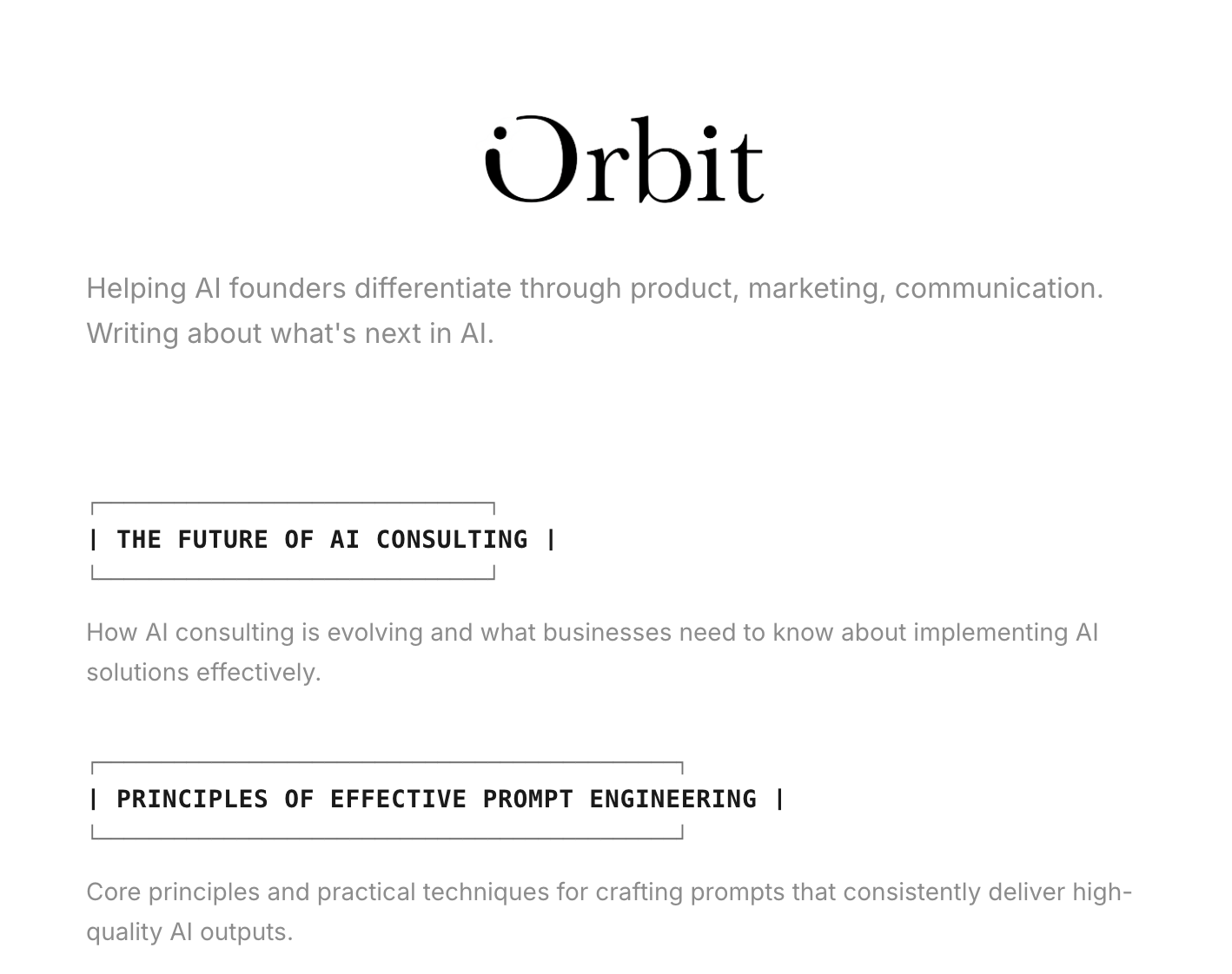 I tried lots of different looks and feel for the home page. One option was replacing the rough ASCII headings with a really modern refined look on hover. Didn’t work. I also tried just a simple transformation on the ASCII. Not quite right.